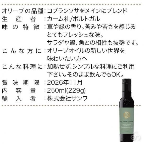 (予約注文 12月下旬発送予定) アーリーハーベスト キンタ・ド・コア 250ml 早摘みオリーブオイル Early Harvest Quinta do Coa serie-oro